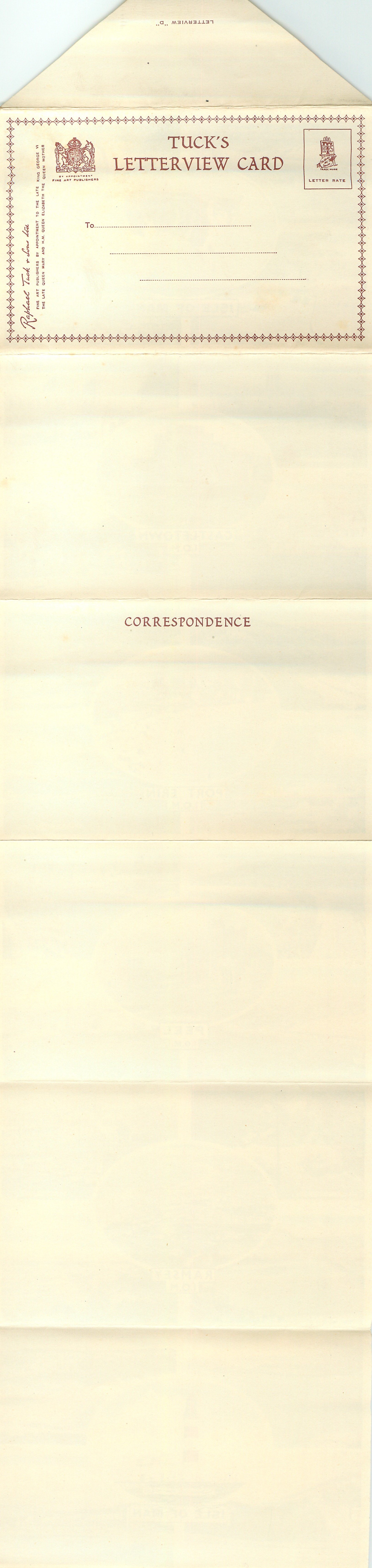 CORRESPONDENCE, fold out stationary with space on the back to write a letter and six views on the front. Folds concertina style into an envelope for posting.