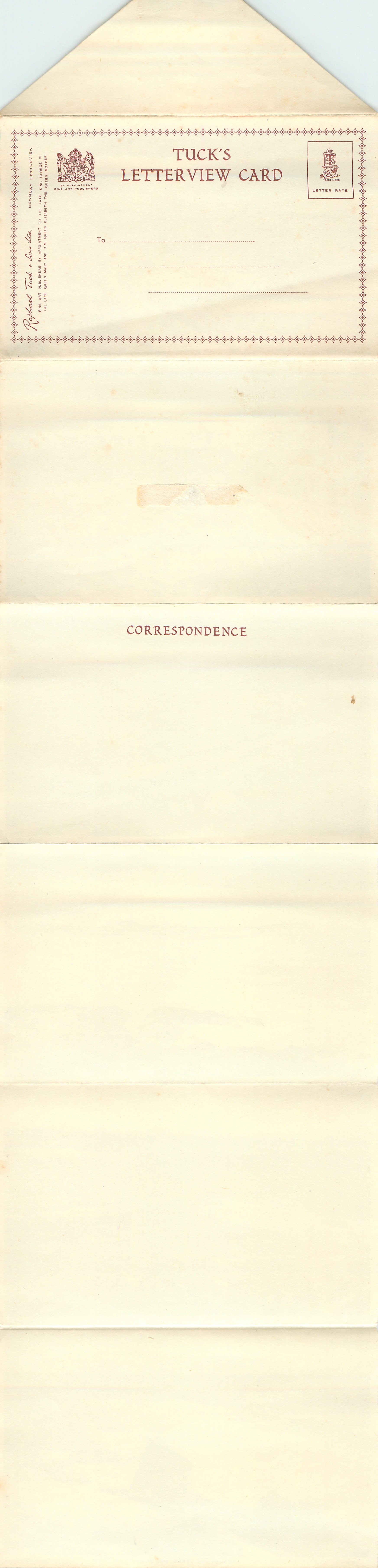 CORRESPONDENCE, fold out stationary with space on the back to write a letter and six views on the front. Folds concertina style into an envelope for posting.