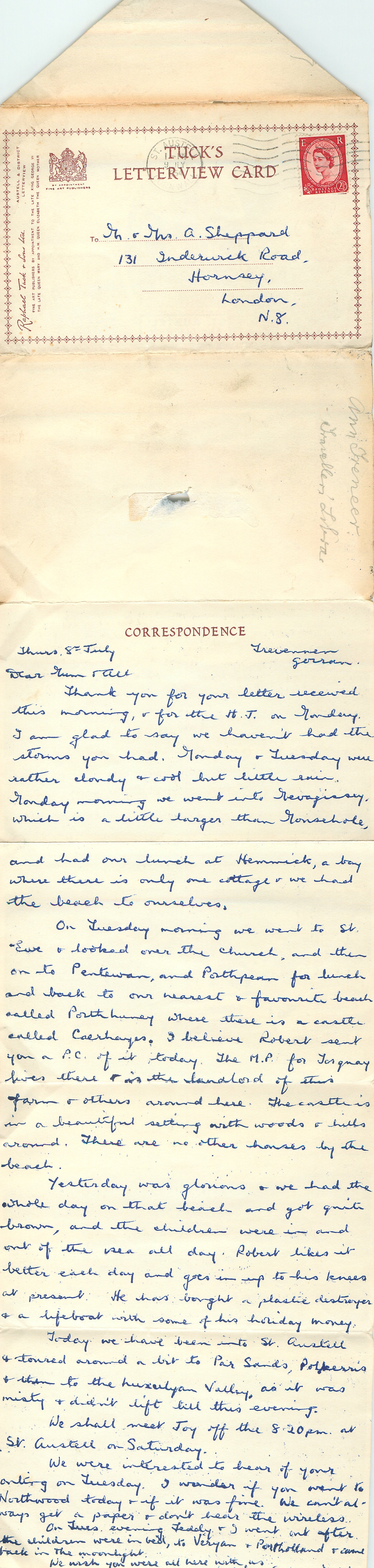 CORRESPONDENCE, fold out stationary with space on the back to write a letter and six views on the front. Folds concertina style into an envelope for posting.