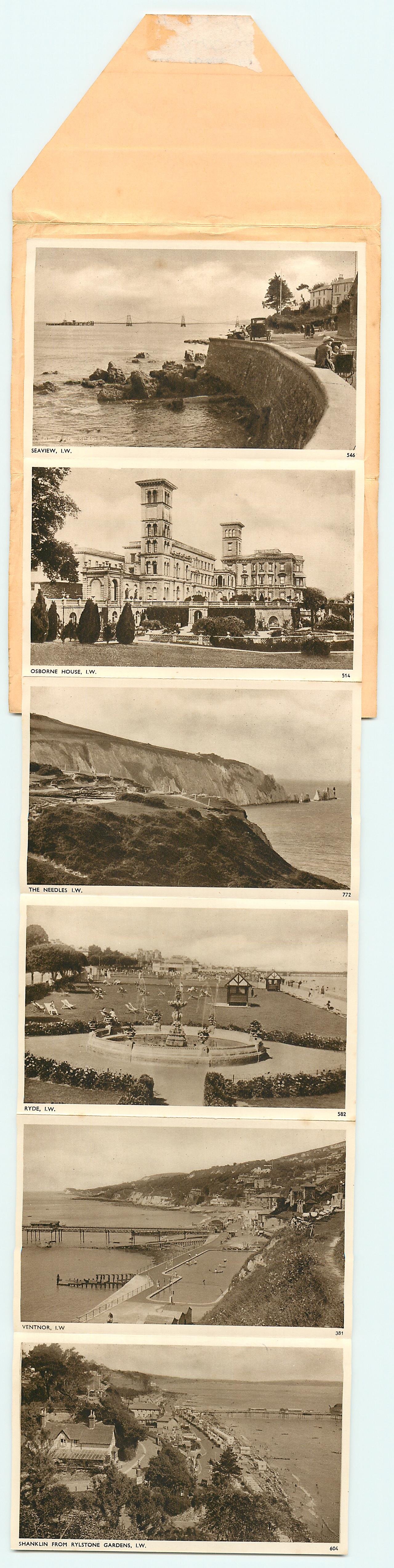 fold out stationary with space on the back to write a letter and six views on the front. Folds concertina style into an envelope for posting.