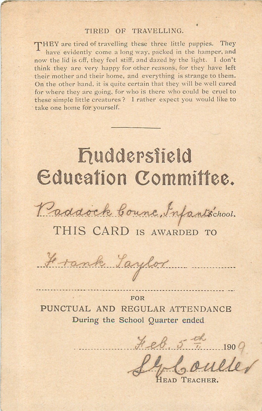 reward cards, postcard images for HUDDERSFIELD EDUCATION COMMITTEE