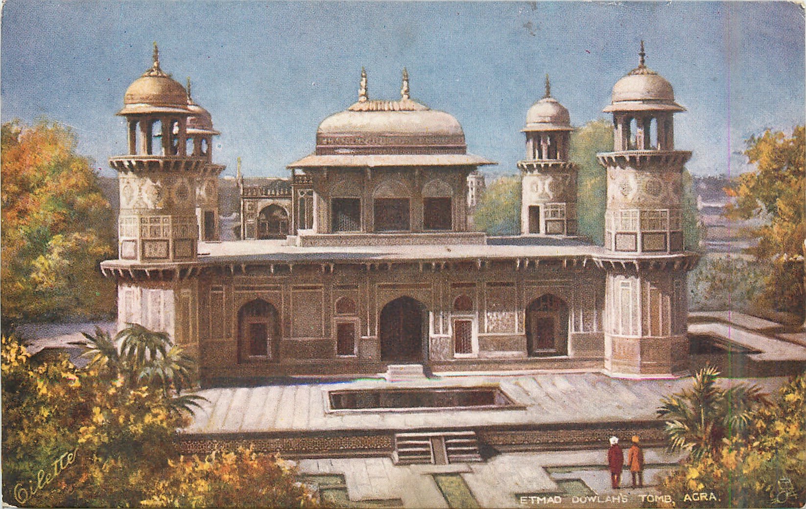 as these cards use postcard images the set is also listed in TuckDBpostcards back Tuck logo at base with RAPHAEL TUCK & SONS, LTD. LONDON, PARIS, NEW YORK AND MONTREAL, same images OILETTE, WIDE-WIDE-WORLD 7237 AGRA
