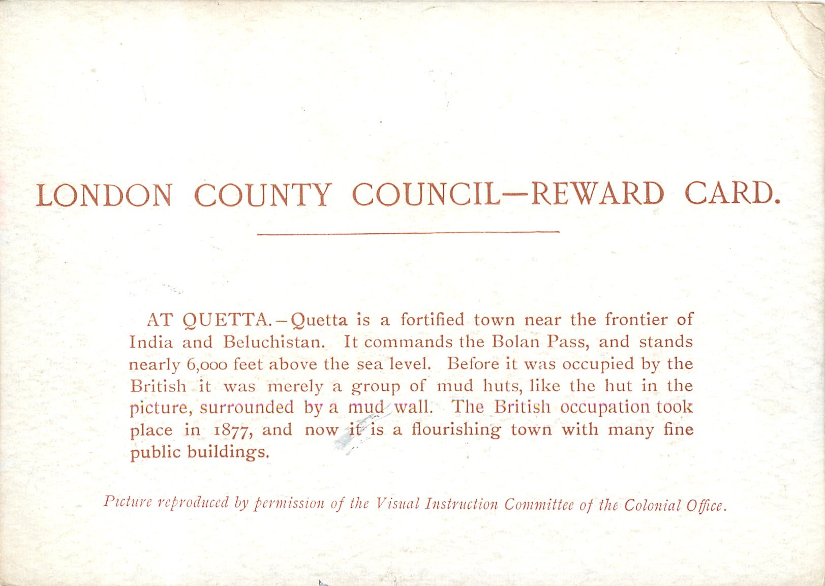 PICTURE REPRODUCED BY PERMISSION OF THE VISUAL INSTRUCTION COMMITTEE OF THE COLONIAL OFFICE much back information on some cards the type face could be Tuck but no other Tuck marking, may well not be made by them, information needed please see the relevent information about the artist that we found on Google & have entered in "Set images"