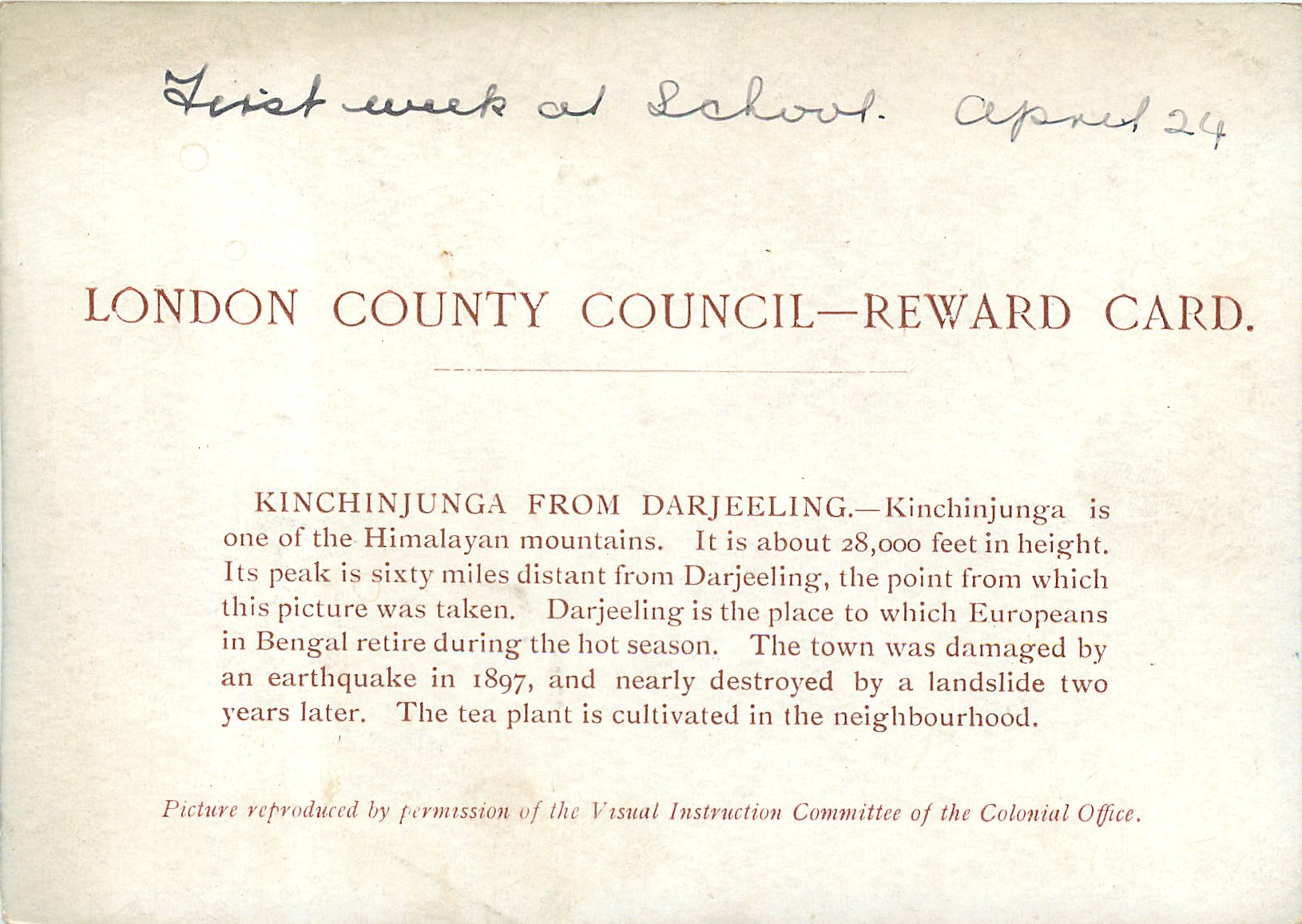 PICTURE REPRODUCED BY PERMISSION OF THE VISUAL INSTRUCTION COMMITTEE OF THE COLONIAL OFFICE much back information on some cards the type face could be Tuck but no other Tuck marking, may well not be made by them, information needed please see the relevent information about the artist that we found on Google & have entered in "Set images"