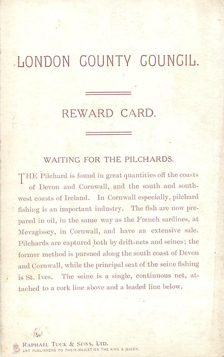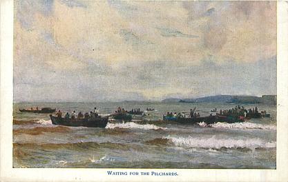 back:- THE PILCHARD IS FOUND IN GREAT QUANTITIES OFF THE COASTS OF DEVON AND CORNWALL, AND THE SOUTH AND SOUTH-WEST COASTS OF IRELAND.//IN CORNWALL ESPECIALLY//LEADED LINE BELOW image from QUAINT CORNERS 698