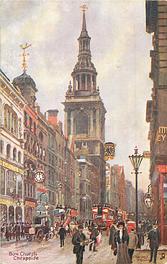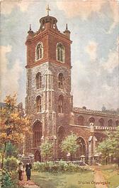 as these cards use postcard images the set is also listed in TuckDBpostcards back Tuck logo at base with RAPHAEL TUCK & SONS, LTD. LONDON, PARIS, NEW YORK AND MONTREAL same images & card titles OILETTE or AQUARETTE 6259 OLD LONDON CHURCHES