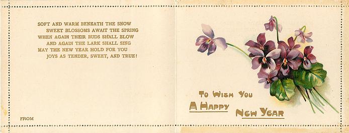 verse in gilt SOFT AND WARM BENEEATH THE SNOW SWEET BLOSSOMS AWAIT THE SPRING ... JOYS AS TENDER, SWEET, AND TRUE!