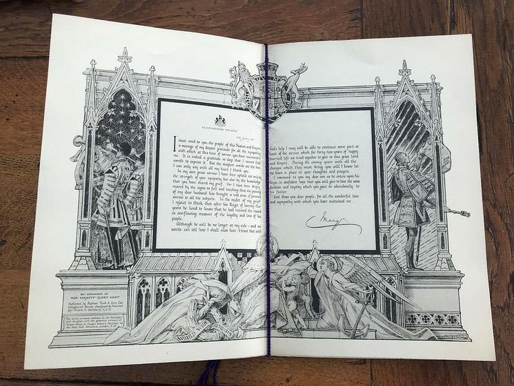 written at Buckingham palace 1936 to thanks the nation and the empire for the sympathy shown on the passing of George V, comes with original tissue guard