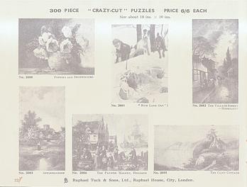 issued in conjunction with Popular Flying, same title with different images, circa 1930's, series of six different puzzles, one of 200 pieces, and the rest of 150 pieces.Please also refer to THE JIGASAURUS WEBSITE by David Shearer