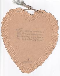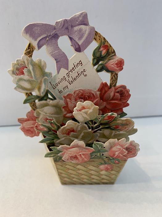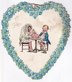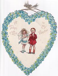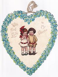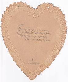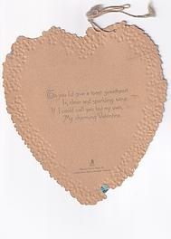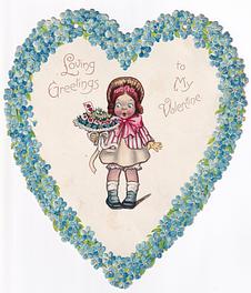 has a gift tag attached to her hat FOR____________ GREETINGS FROM ST. VALENTINE.