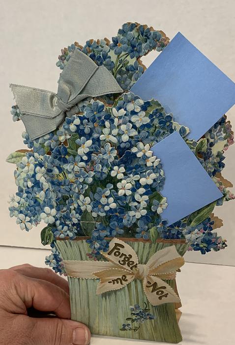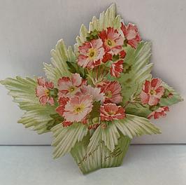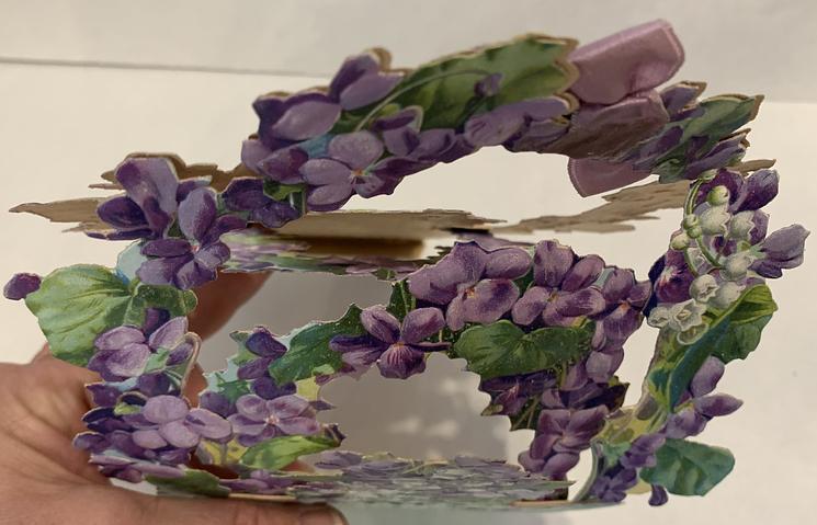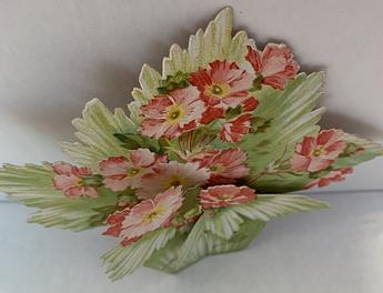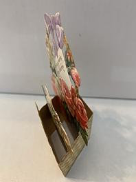 stand up 3 D design, flowers have perforated areas that make some stand out and that a letter can be placed inside.