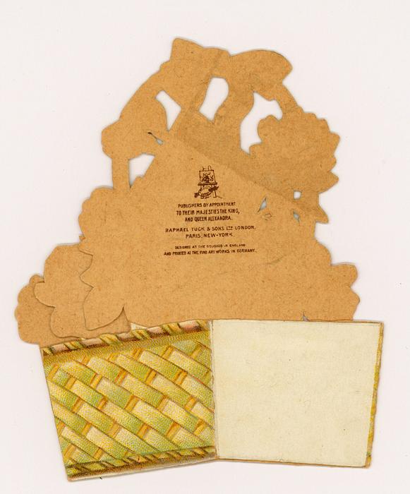 RAPHAEL TUCK & SONS, with or w/o LONDON -- with or w/o COPYRIGHT at base in small letters, some greetings are damaged with panels separating or missing