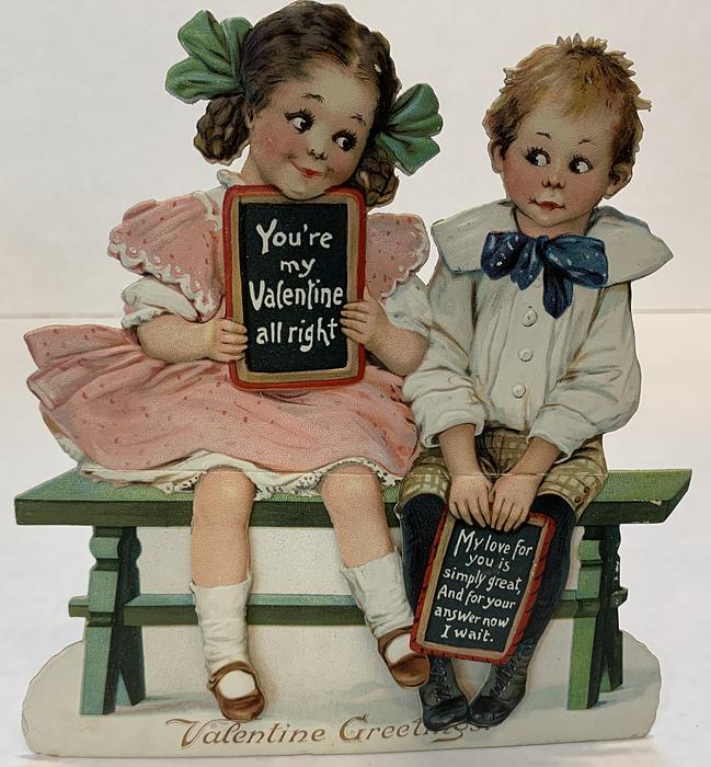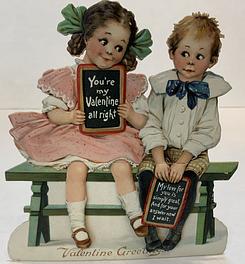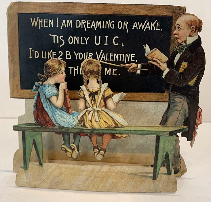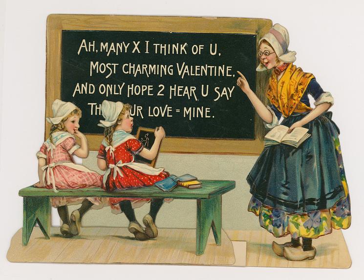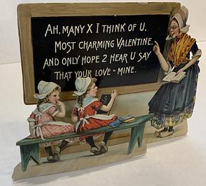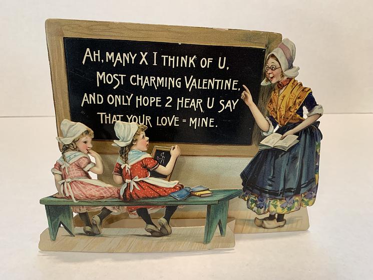 Valentine, teacher with slate blackboard fold out, Brundage,