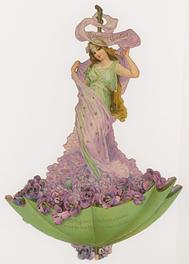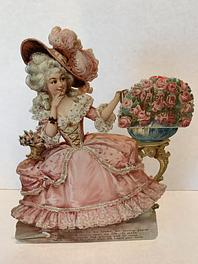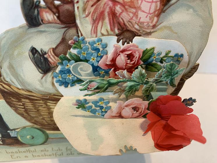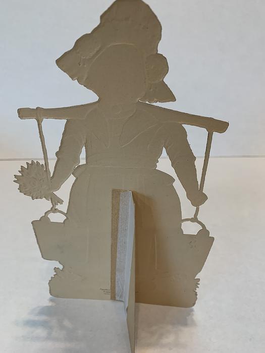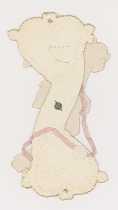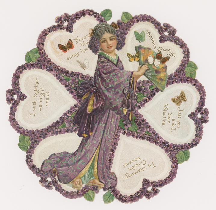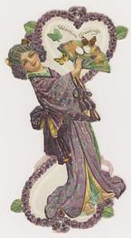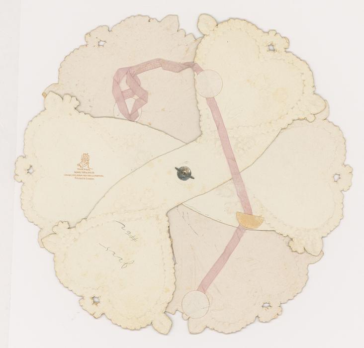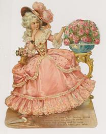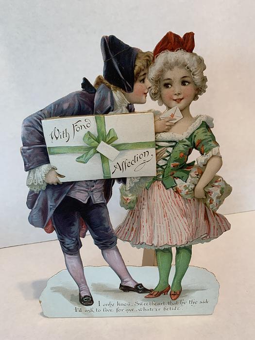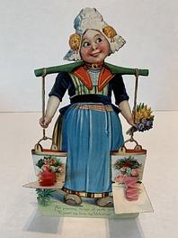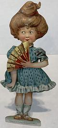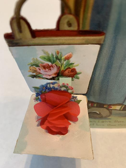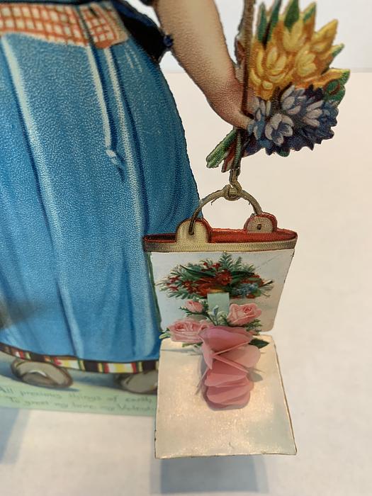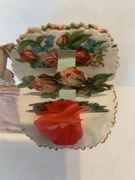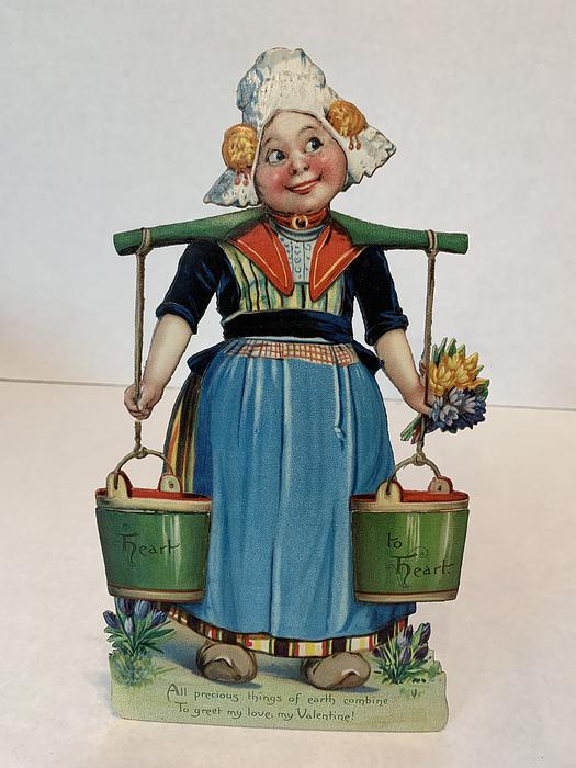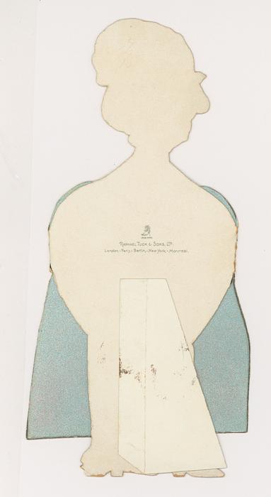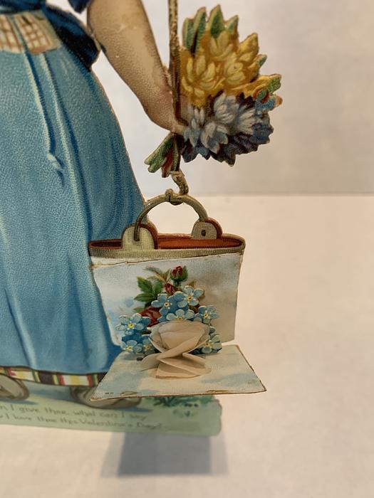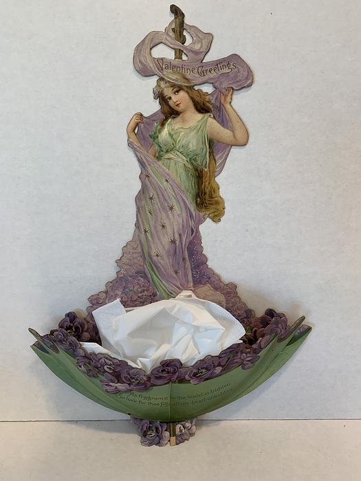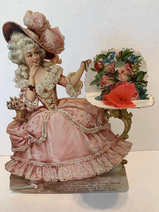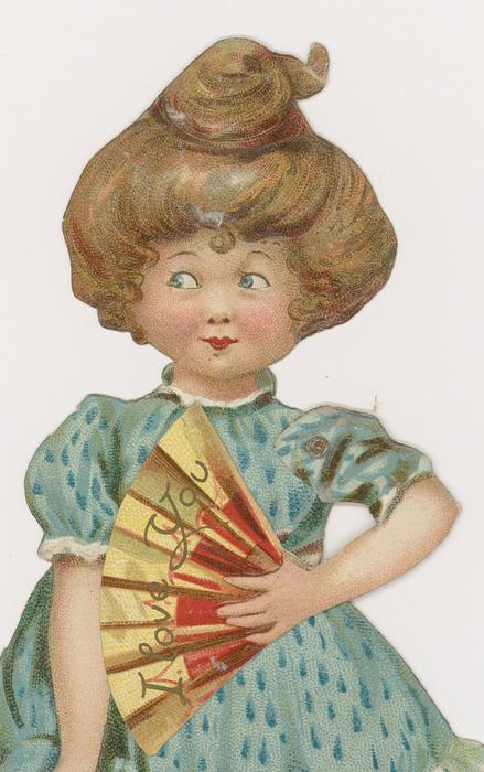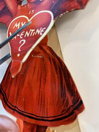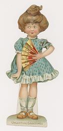 Valentine girl with movable hand fan, stand up, Tuck, circa 1905