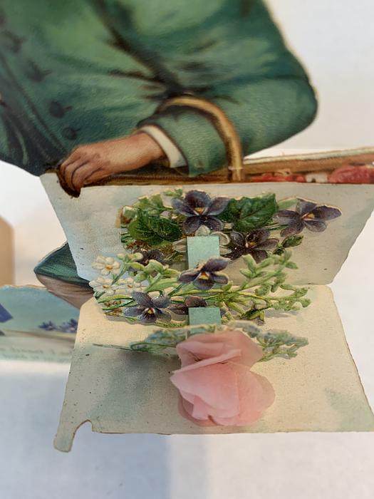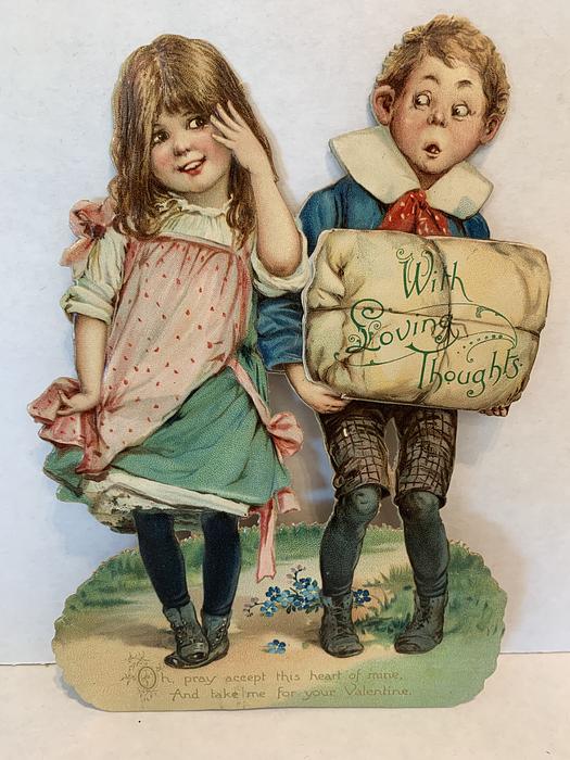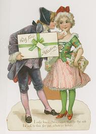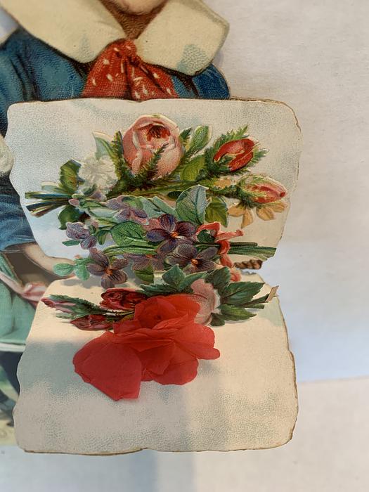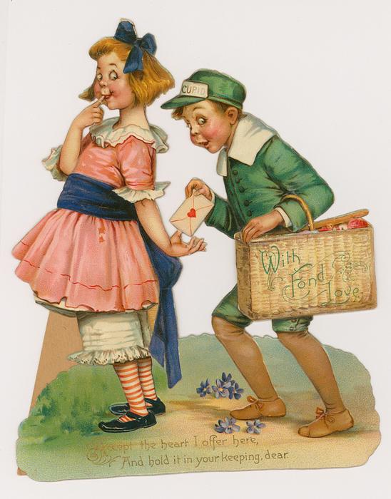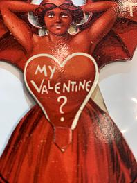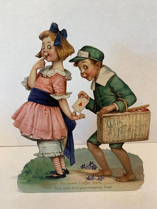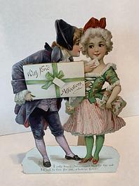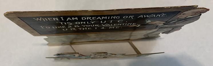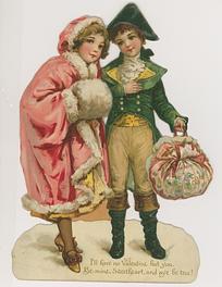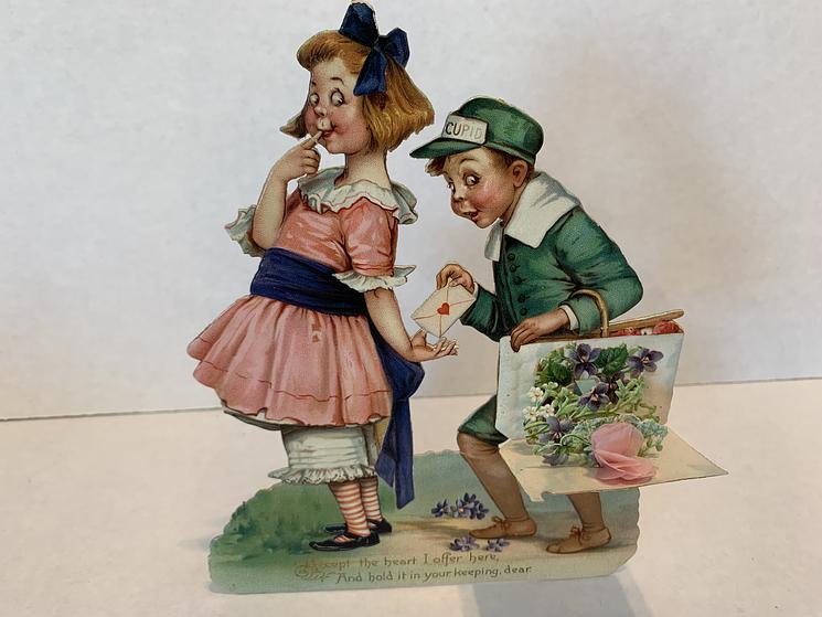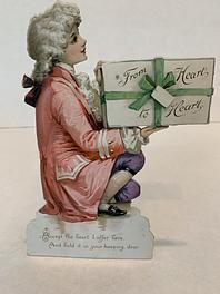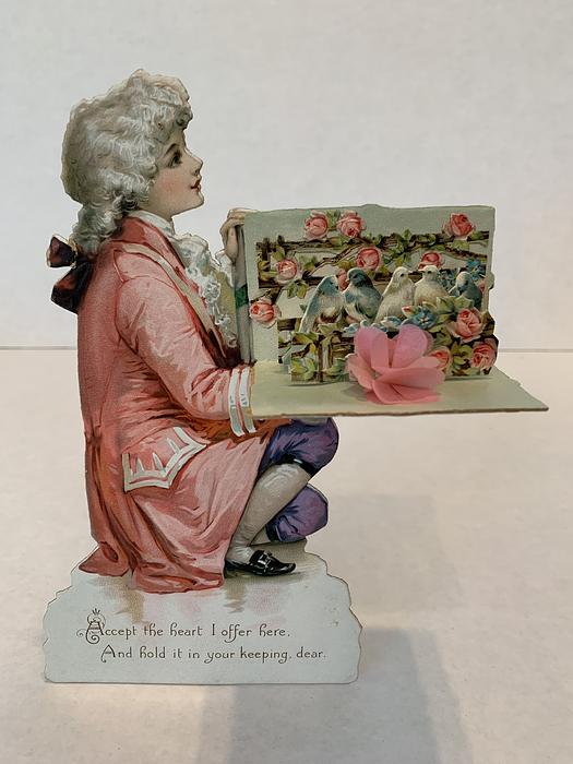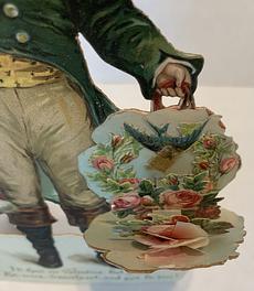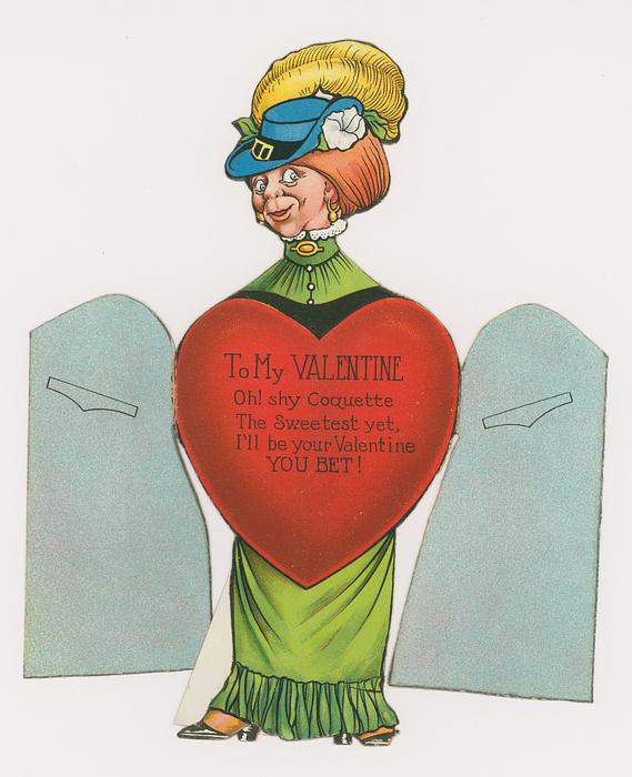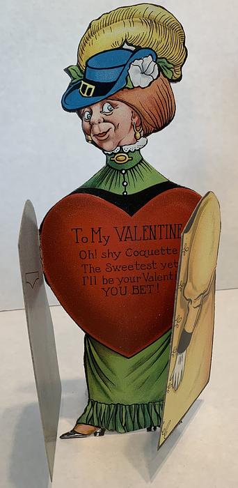coat opens to reveal TO MY VALENTINE, OH! SHY COUQUETTE, THE SWEETEST YET, ILL BE YOUR VALENTINE YOU BET!