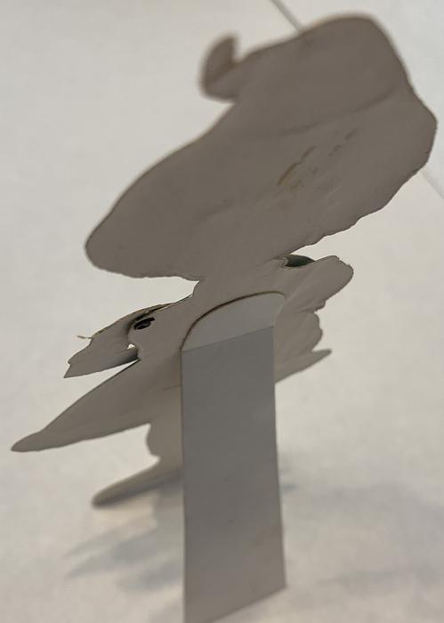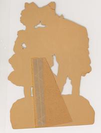 she has a tab at the base of the valentine that is designed to fit into a slot in her upper skirt I think to make her chest stick out.