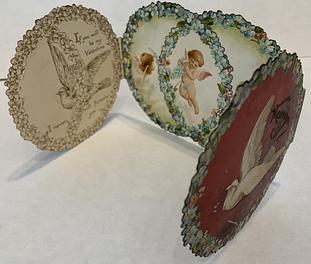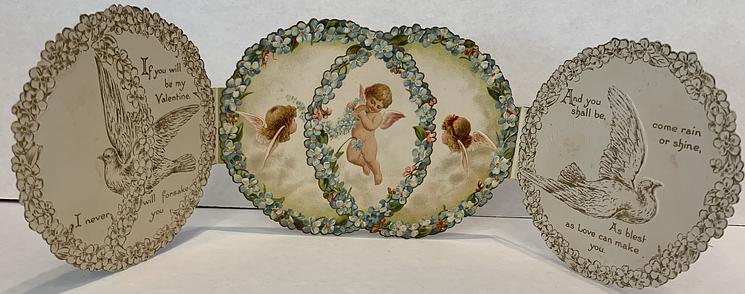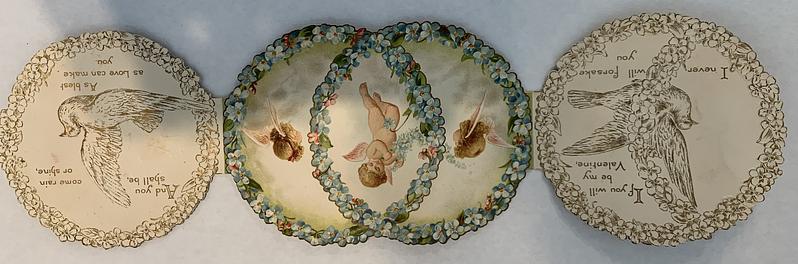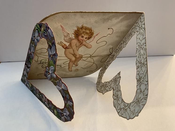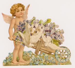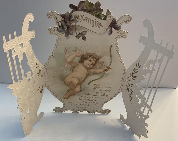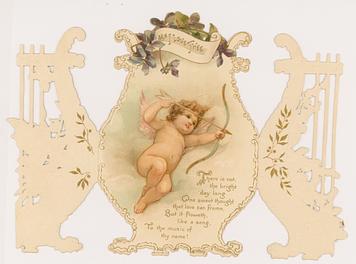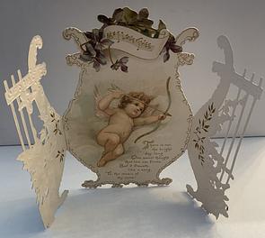 two side panel open to reveal the messages and an image of some cupids