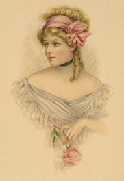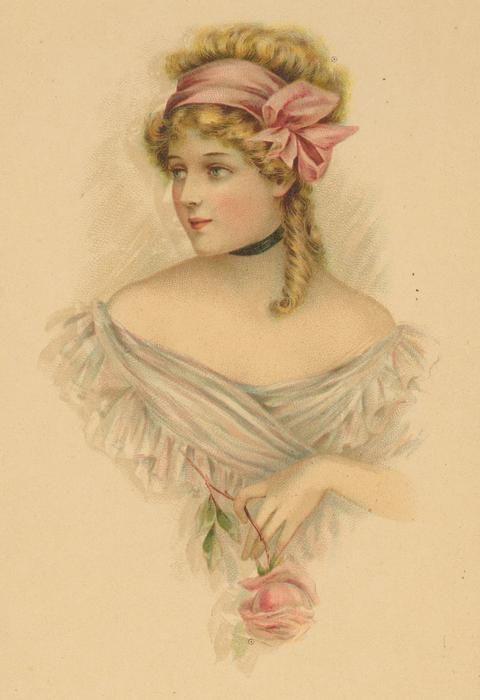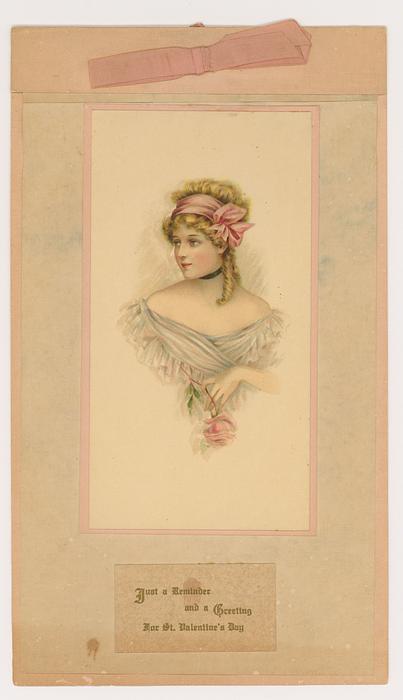 Valentine, Glamorous woman, pink bow and ribbon, pink rose, R. Tuck circa 1915