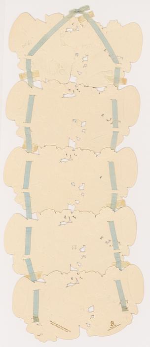 five panels connected with ribbon and designed to hang,