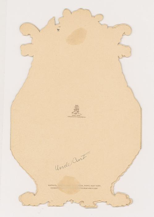 RAPHAEL TUCK & SONS, LTD., easel trademark, PUBLISHERS BY APPOINTMENT TO THEIR MAJESTIES THE KING AND QUEEN ALEXANDRA. DESIGNED AT THE STUDIOS IN ENGLAND AND PRINTED AT THE FINE ART WORKS IN SAXONY.