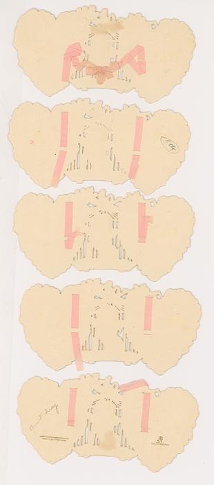 four pages attached at the top with ribbon,