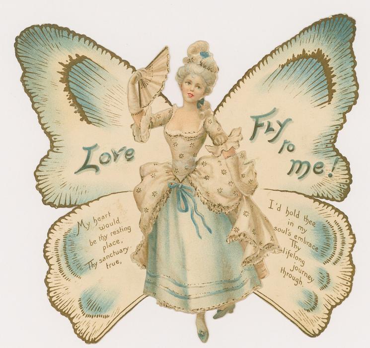 FLY, LITTLE MESSENGER, AND TELL MY SWEET, THAT SOMEONE LOVES HER DEAR,--HASTE HER TO GREET. BUZZ, BUZZ ROUND AND TO HER SAY, SHE'S MY VALENTINE TO-DAY!