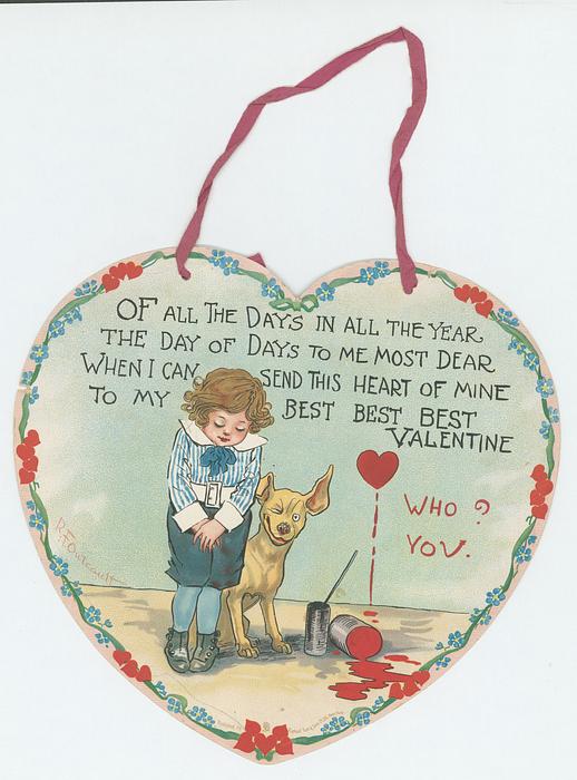 OF ALL THE DAYS IN ALL THE YEAR THE DAY OF DAYS TO ME MOST DEAR. WHEN I CAN SEND THIS HEART OF MINE TO MY BEST BEST BEST VALENTINE. WHO? YOU.