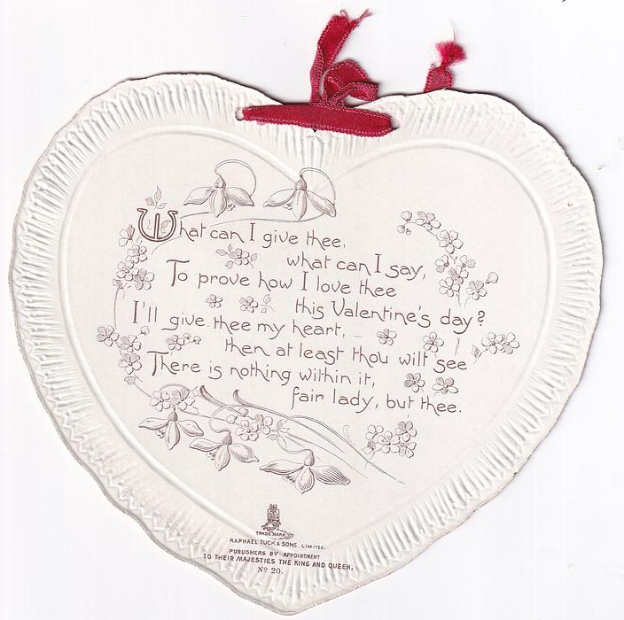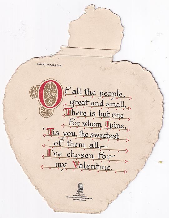 OF ALL THE PEOPLE, GREAT AND SMALL, THERE IS BUT ON FOR WHOM I PINE, TIS YOU, THE SWEETEST OF THEM ALL, I'VE CHOSEN FOR MY VALENTINE.