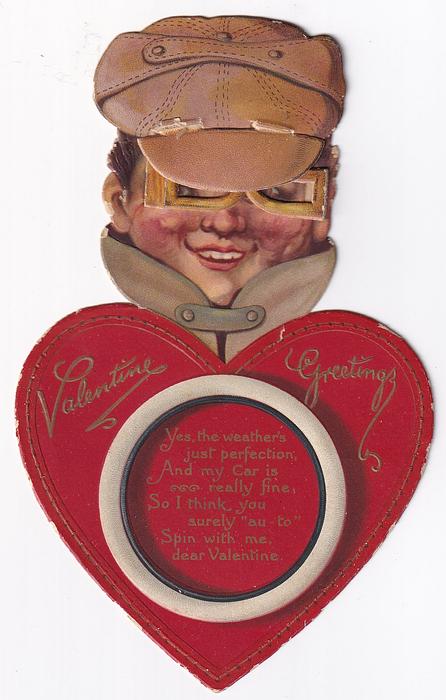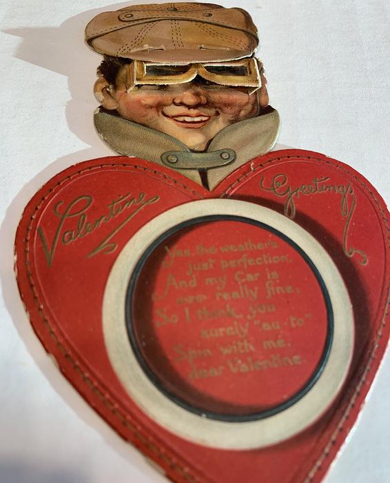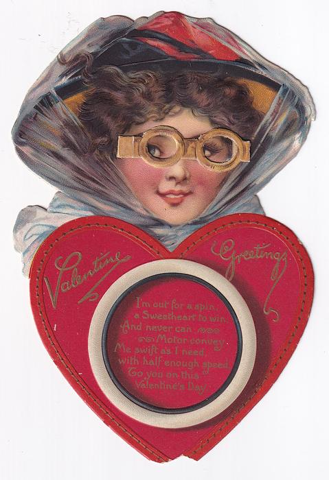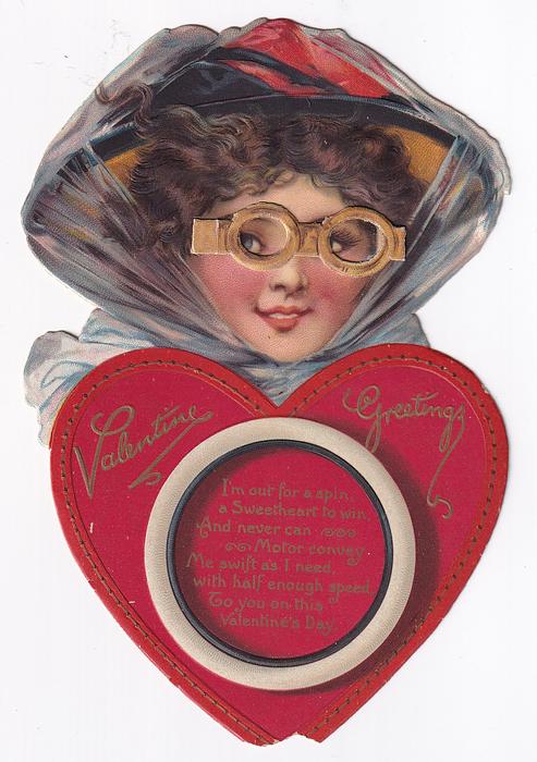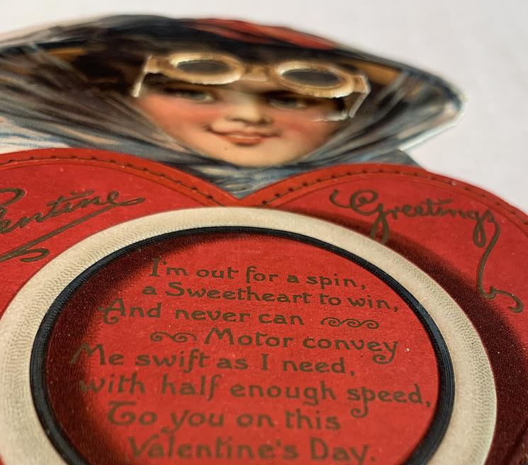 I'M OUT FOR A SPIN, A SWEETHEART TO WIN, AND NEVER CAN MOTOR CONVEY ME SWIFT AS I NEED, WITH HALF ENNOUGH SPEED, TO YOU ON THIS VALENTINE'S DAY