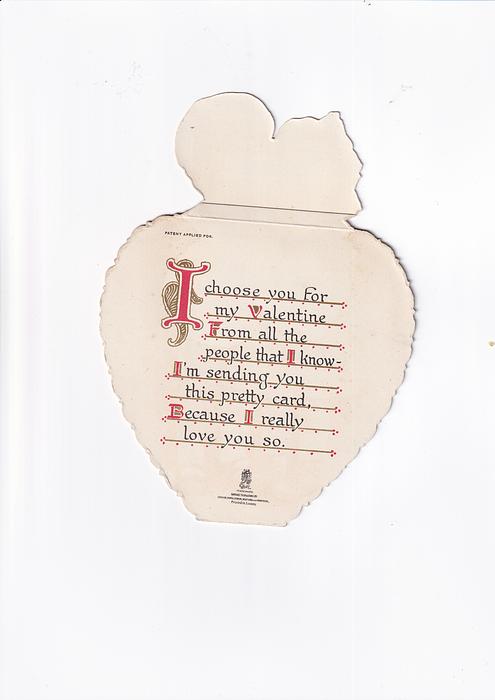 I CHOOSE YOU FOR MY VALENTINE FROM ALL THE PEOPLE THAT I KNOW- I'M SENDING YOU THIS PRETTY CARD, BECAUSE I REALLY LOVE YOU SO.