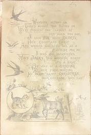 A MERRY CHRISTMAS TO YOU on reverse 12 line poem PUSSY BY THY WHISKERS WHITE: BY THY TAIL THAT STANDS UPRIGHT...., also comes with WITH COMPLIMENTARY REFLECTIONS, A MERRY CHRISTMAS AND A HAPPY NEW YEAR
