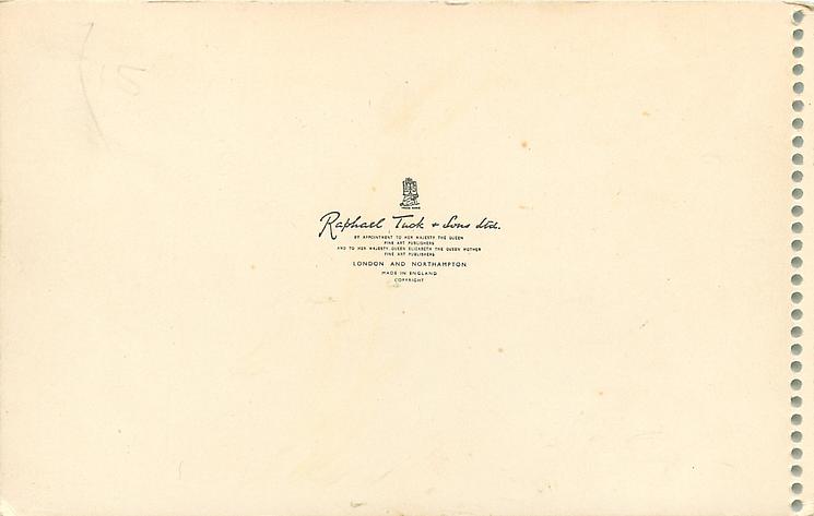 CHRISTMAS GREETINGS on reverse fifteen line poem MAY CHRISTMAS COME IN GENIAL MOOD WITH SUNNY SMILES AND SKIES OF BLUE, AND MAY IT BRING FULL MEED TO YOU, OF ALL THINGS SWEET, AND FAIR, AND GOOD. MAY CHRISTMAS COME WITH GOODLY CHEER....YOUR MEMORY DEAR!