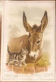 WITH THE COMPLIMENTS OF THE SEASON. on reverse eight line poem A DONKEY, PRAY OBSERVE, THE WHOLE WORLD ROUND, IS OVER PRONE TO TREAD ON TICKLISH GROUND-......