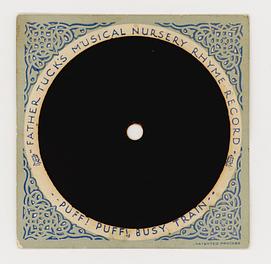 8 pages red gramophone in centre, mother in child bottom left, man with luggage bottom right, and train across top