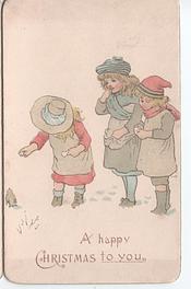 oblong single sheet, single fold, embossed inside right top:- A HAPPY CHRISTMAS TO YOU. below:-ALL THAT'S GLAD AND GAY, AND GRACIOUS, COME WITH YULE-TIDE'S BLITHESOME CHEER, MAY ITS CHEERY GLOW GO WITH YOU, FAR INTO THE COMING YEAR