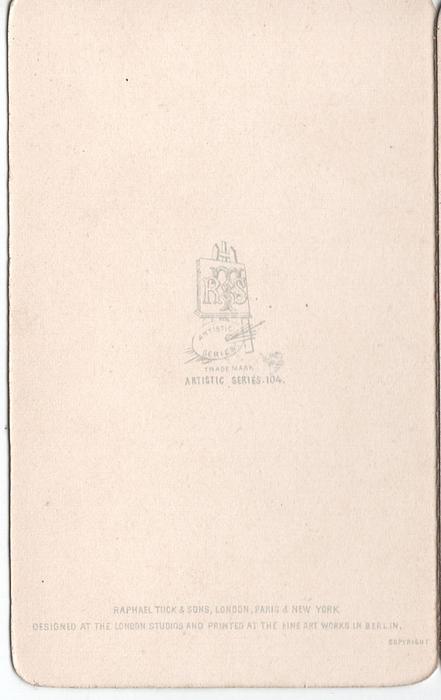 easel artistic series trademark, RAPHAEL TUCK & SONS, LONDON PARIS NEW YORK; DESIGNED AT THE LONDON STUDIOS AND PRINTED AT THE FINE ART WORKS IN BERLIN, COPYRIGHT dating note: Raphael Tuck became Limited (LTD) in 1895