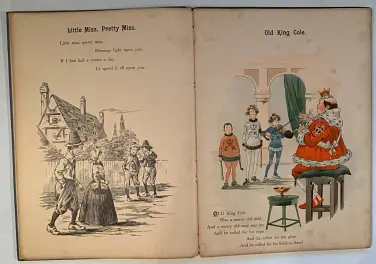 pictorial board covers with cream colored background and red cloth spine binding, no title on spine binding, frontispiece plus seven internal full page color plates, complete but some hand coloring to this copy, 128 pages, EDITED BY EDRIC VREDENBURG, RAPHAEL TUCK & SONS, LTD. LONDON. PARIS. NEW YORK. ART PUBLISHERS BY ROYAL WARRANT, (BLACK & WHITE DRAWINGS & LETTERPRESS. PRINTED IN ENGLAND)