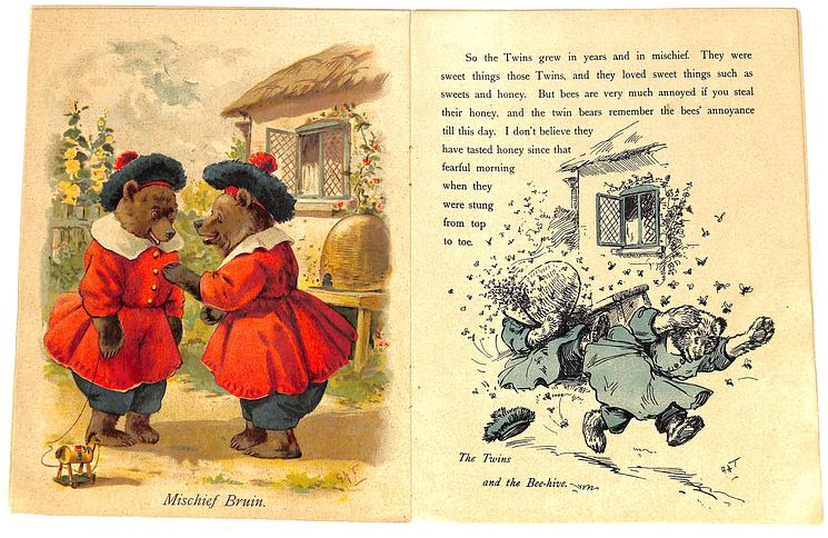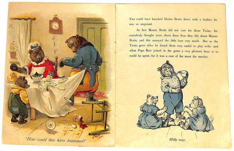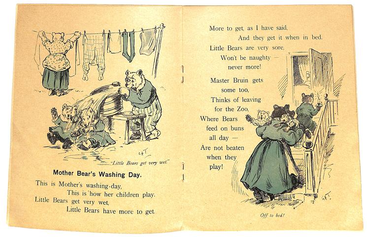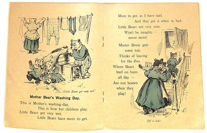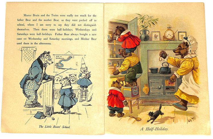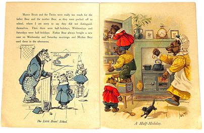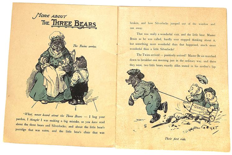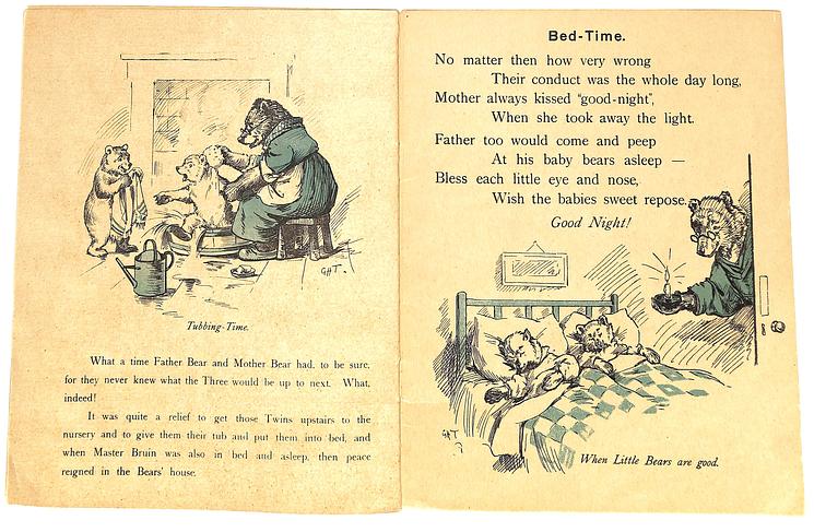 12 pages UNTEARABLE, see 6740 for the plain version, father, mother, and baby bear dressed as people sit before fireplace