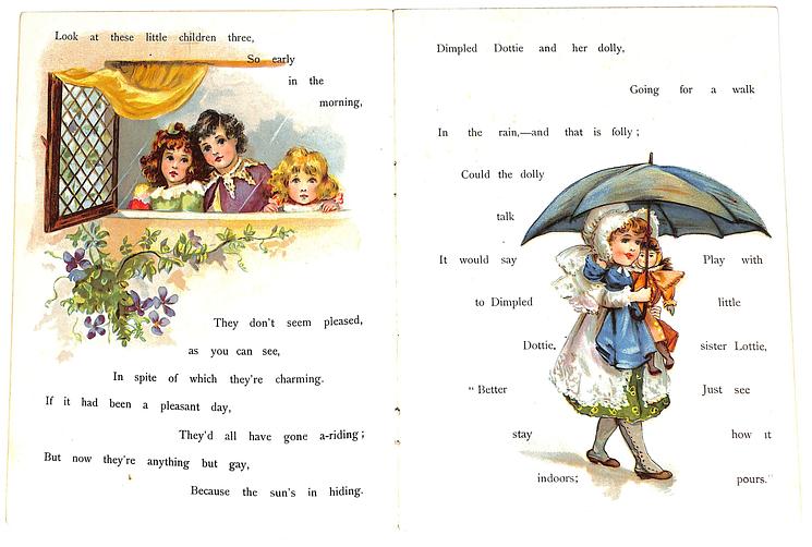 8 pages boy in sailor suit show bird to girl in fancy dress, girl in sailor suit with hoolahoop looks on