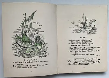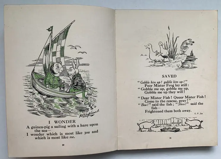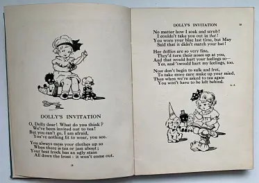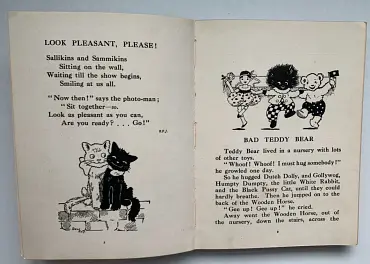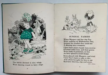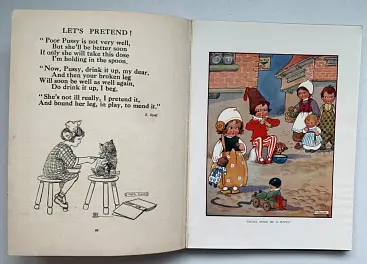 Lovely cover illustration by Florence Hardy, the background behind looks a bit sun faded. Circa 1930, gift inscription