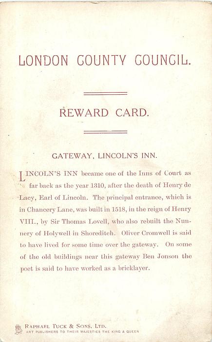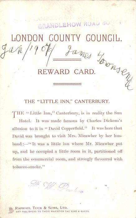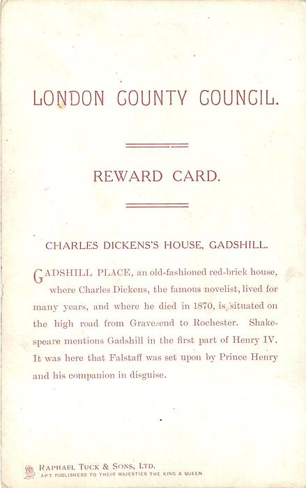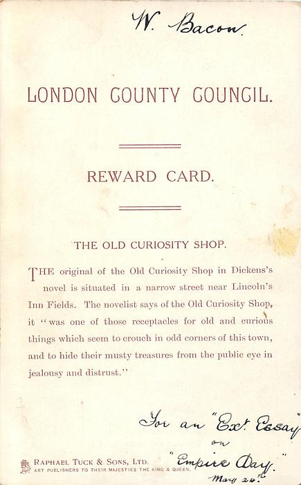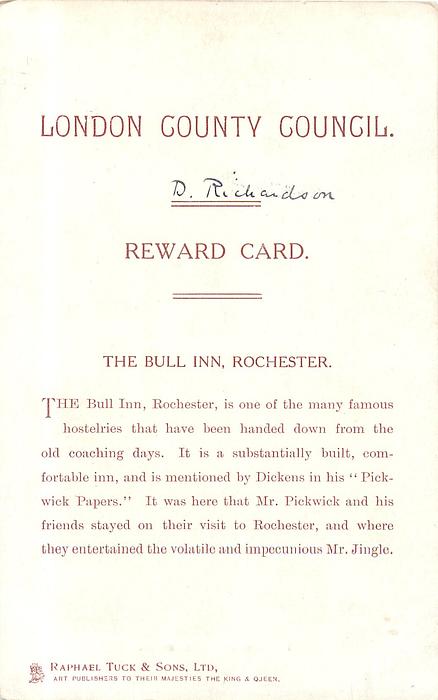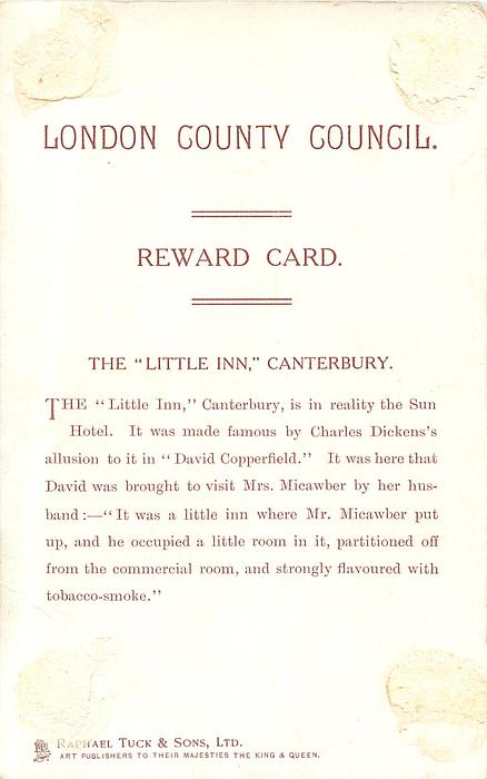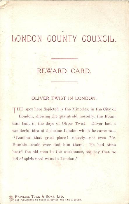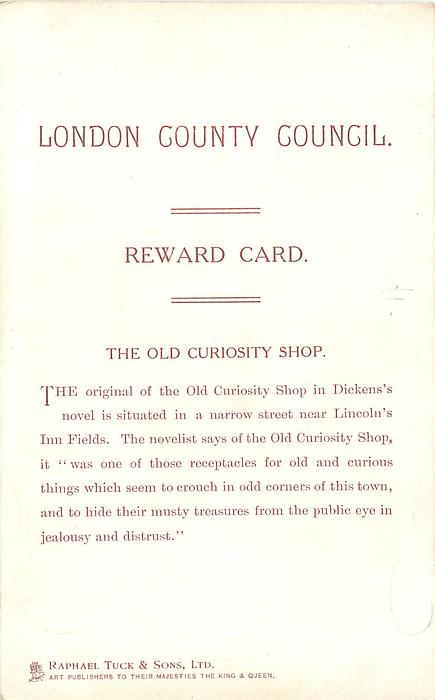 LONDON COUNTY COUNCIL REWARD CARD, images come from IN DICKENS LAND sets