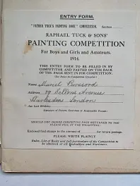 comes with an entry form for the Tuck Prize Painting competition for 1914