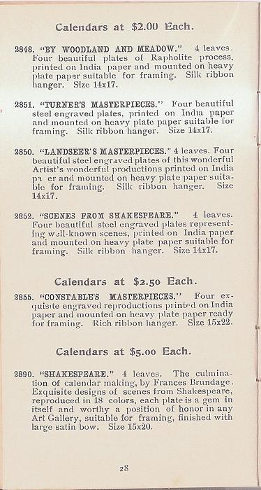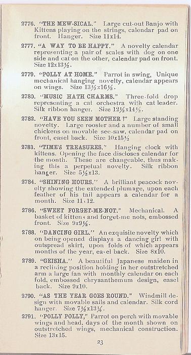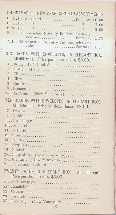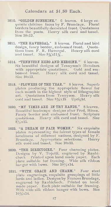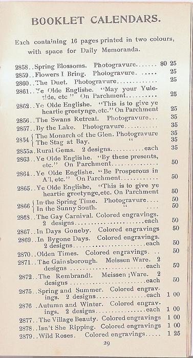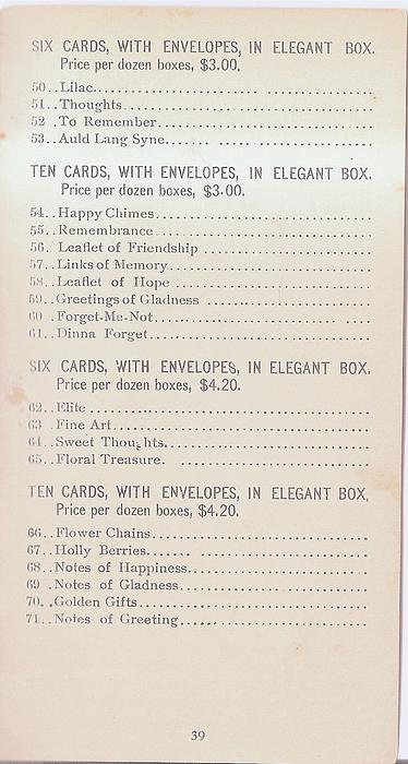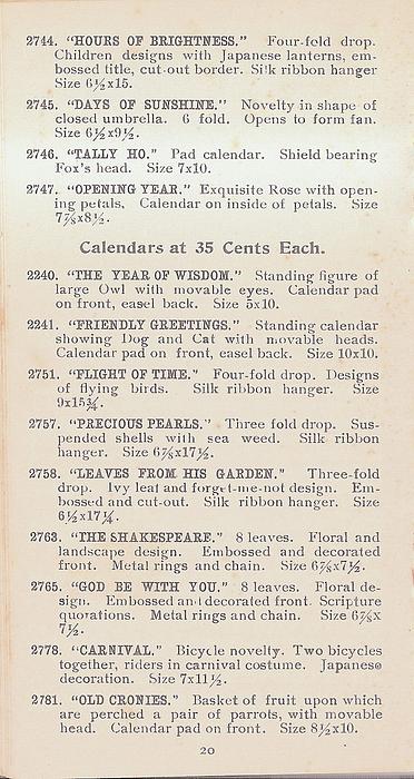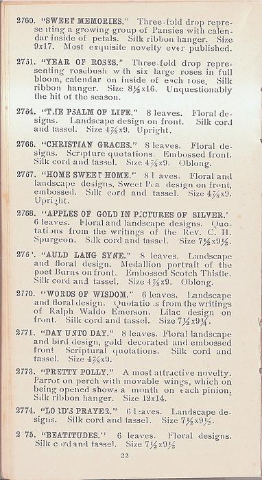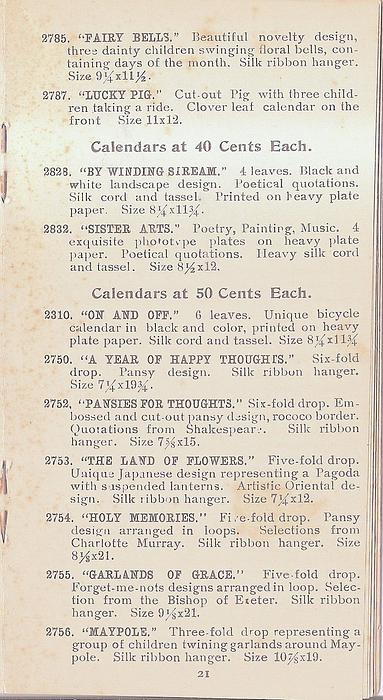 HOURS OF BRIGHTNESS - DAYS OF SUNSHINE - TALLY HO - OPENING YEAR - THE YEAR OF WISDOM - FRIENDLY GREETINGS - FLIGHT OF TIME - PRECIOUS PEARLS - LEAVES FROM HIS GARDEN - THE SHAKESPEARE - GOD BE WITH YOU - CARNIVAL - OLD CRONIES