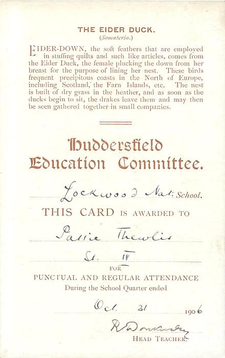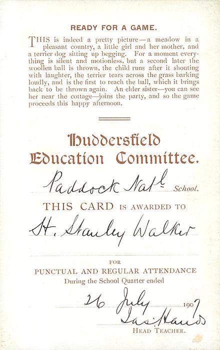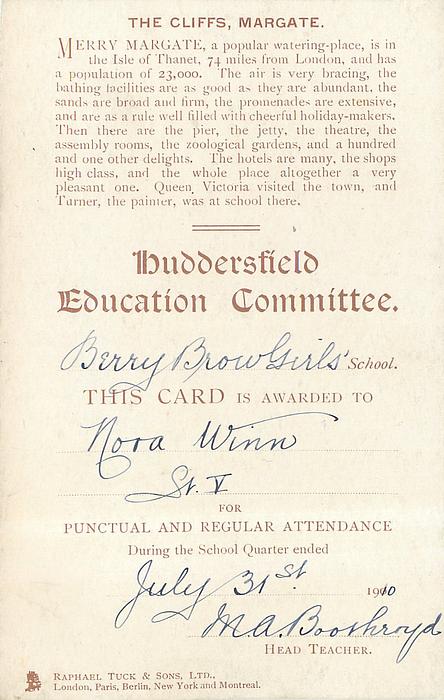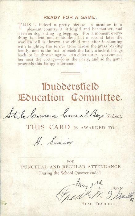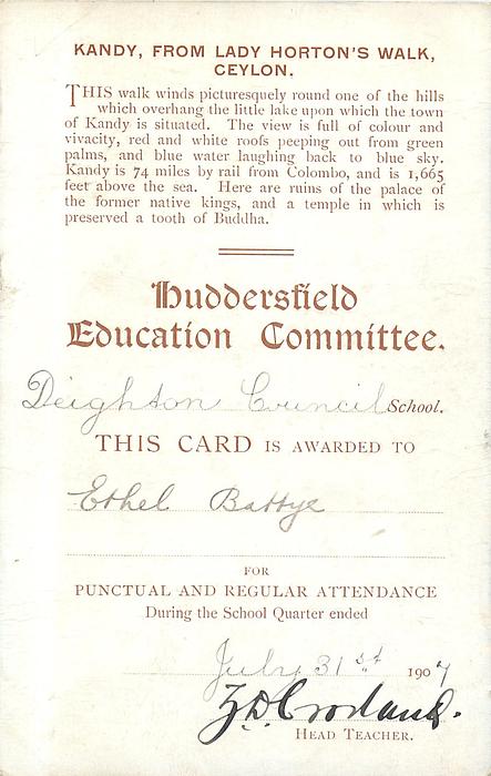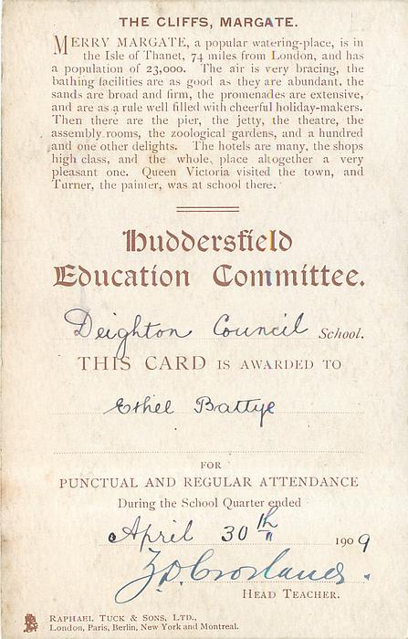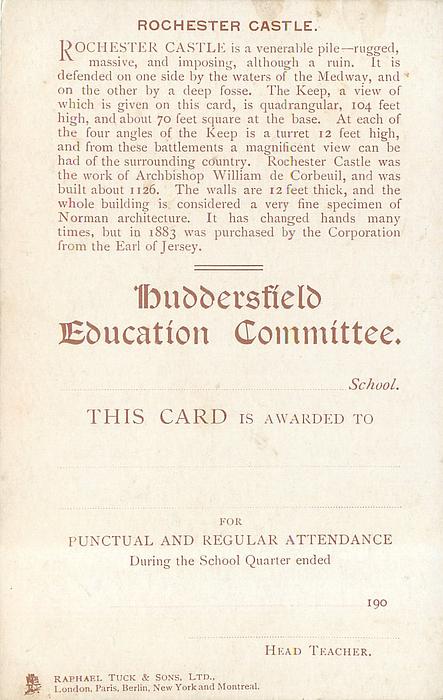 reward cards, postcard images for HUDDERSFIELD EDUCATION COMMITTEE