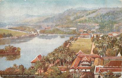 back:- THIS WALK WINDS PICTURESQULY ROUND ONE OF THE HILLS WHICH OVERHANG THE LITTLE LAKE UPON WHICH THE TOWN OF KANDY IS SITUATED. THE VIEW IS FULL OF COLOUR//TOOTH OF BUDDHA on OILETTE on front, same image & card title in OILETTE, WIDE-WIDE-WORLD 7482 CEYLON SERIES II