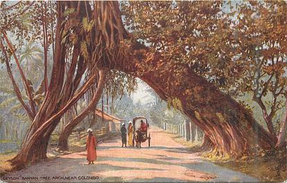 back:- COLOMBO, THE CAPITAL OF CEYLON, IS SITUATED ON THE WESTERN SIDE OF THE ISLAND. AMONG THE CHIEF BUILDINGS ARE THE GOVERNMENT HOUSE, COURT HOUSE//OPPOSITE SIDE OF THE PATH OILETTE on front, same image & card title OILETTE, WIDE-WIDE-WORLD 7482 CEYLON SERIES II