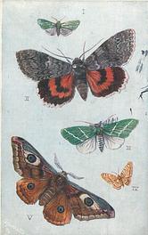 back:- MOTHS ARE DISTINGUISHED FROM BUTTERFLIES BY HAVING THE ANTENNAE POINTED AT THE ENDS, CARRYING THE WINGS FLAT ON THE BACK, OR DEFLEXED ON THE SIDES//MARGIN OF THE FORE WING same image & card title AQUARETTE 9219 BUTTERFLIES AND MOTHS