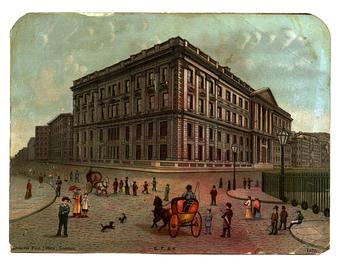 printed RTS easel trademark in brown, title and number in brown ink on a white tab, probably from an individually numbered series, very poor condition