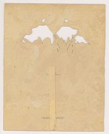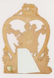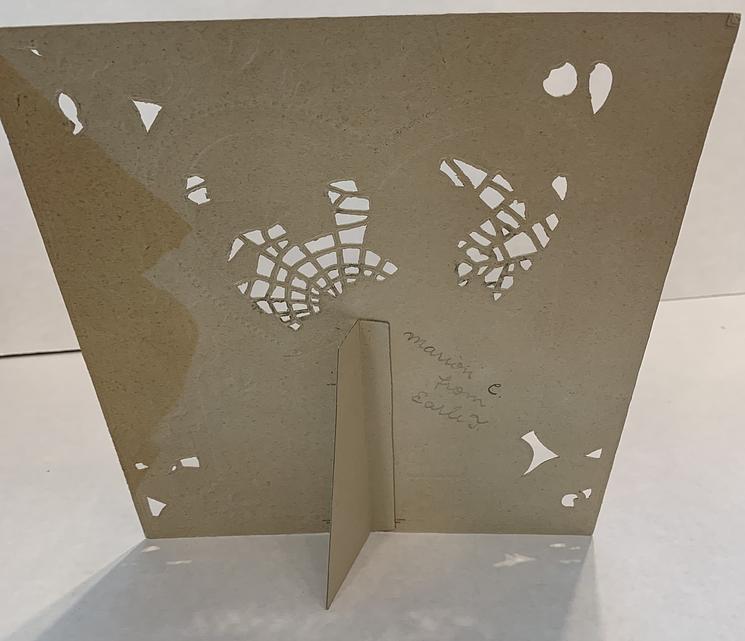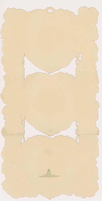 the panel with the image is mounted to the green background via 4 hinged paper connections that when extended are designed to pop the image forward, 3 of the 4 paper hinges work to pop the panel forward and the other could be repaired.