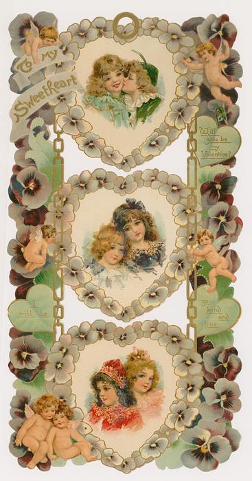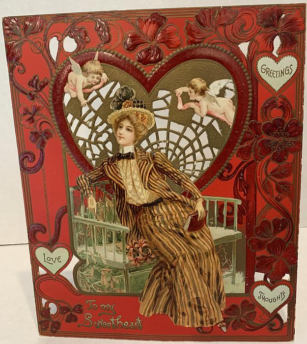 TO MY SWEETEART, GREETINGS, LOVE, THOUGHTS in small heart shaped insets,